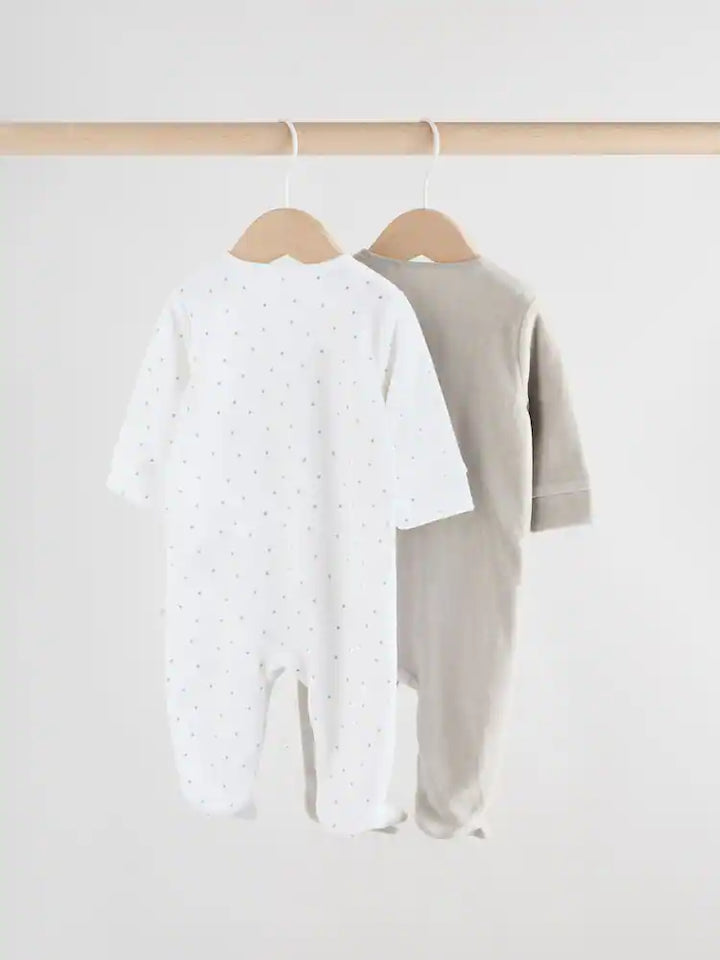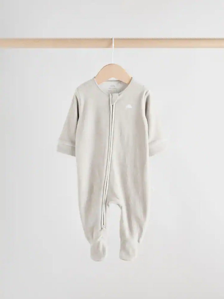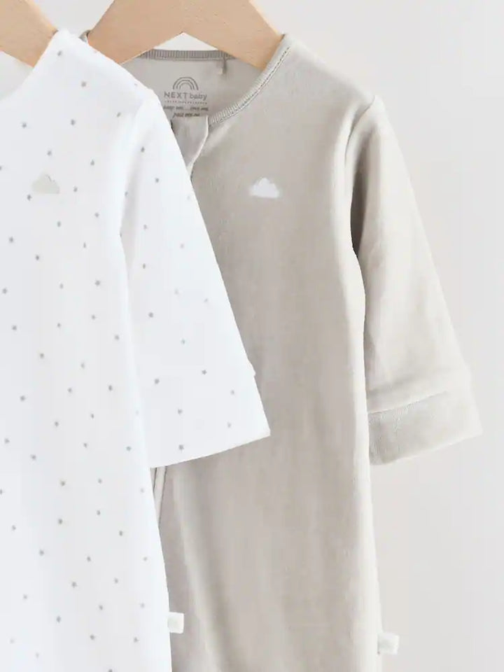 Next Uk Grey Velour Two Way Zip Baby Sleepsuits 2 Pack (0-2yrs)