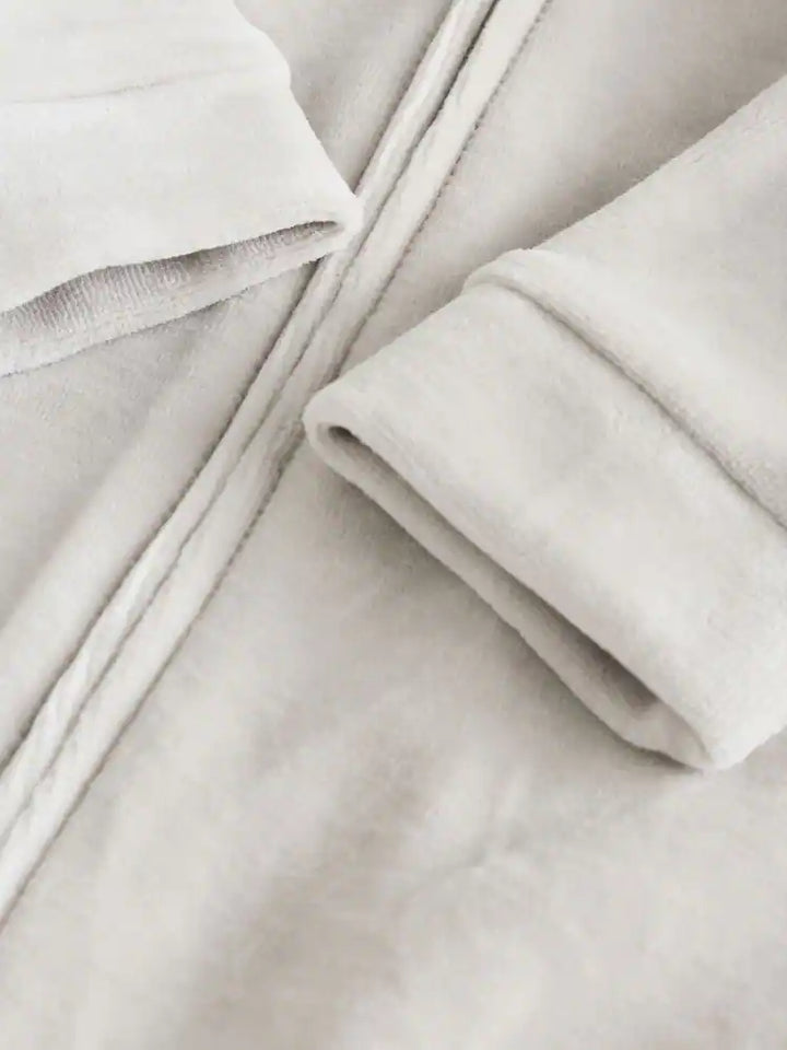 ✨ Soft, neutral tones — perfect whether you're going for style or layering under jackets.🔁 Two-way zip design means quick diaper changes without undressing baby all the way.🌿 Micro fleece +...