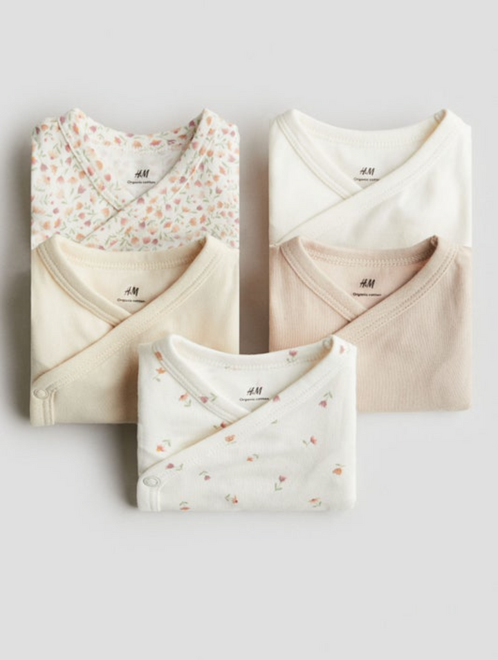 👶 H&M 5‑Pack Wrap‑Over Bodysuits – 100% Cotton
