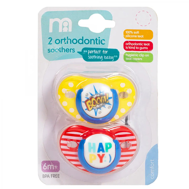 Each pack includes two soothers, so you'll always have a backup on hand. The lightweight and ergonomic design ensures the soothers stay securely in place while being easy for your baby to handle. Plus, they’re dishwasher and sterilizer safe, making them a practical and hygienic choice for busy parents.