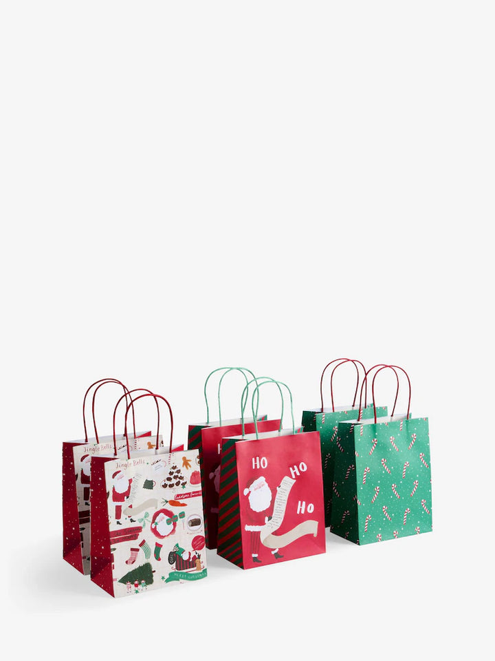 Next Multi Santa Christmas 6 Pack Gift Bags 22.5cm x 17.5 cm x 10cm