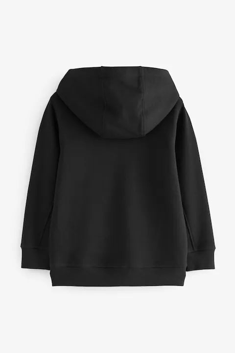 The **Next UK Black Plain Zip Through Hoodie** is a versatile and comfortable wardrobe staple, perfect for everyday wear. Made from a soft cotton blend, this hoodie is both cozy and durable, providing warmth and comfort for all seasons. The simple black design makes it easy to style with various outfits, whether for casual outings, school, or lounging at home.