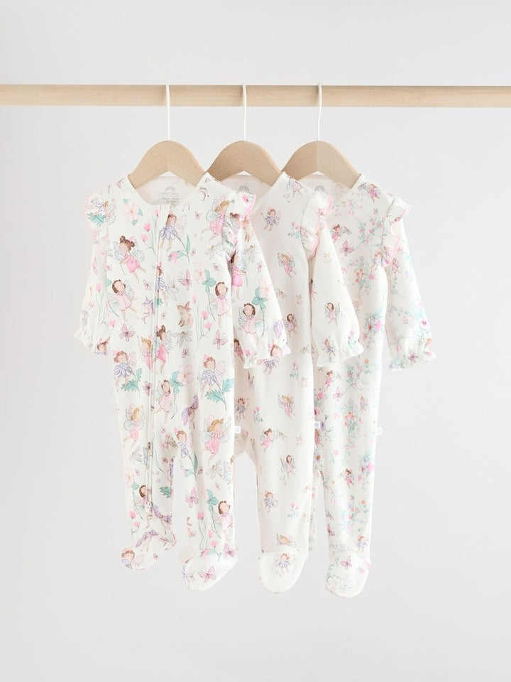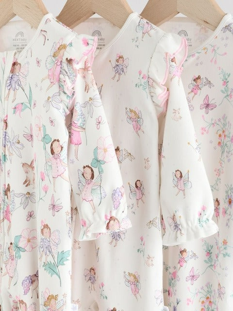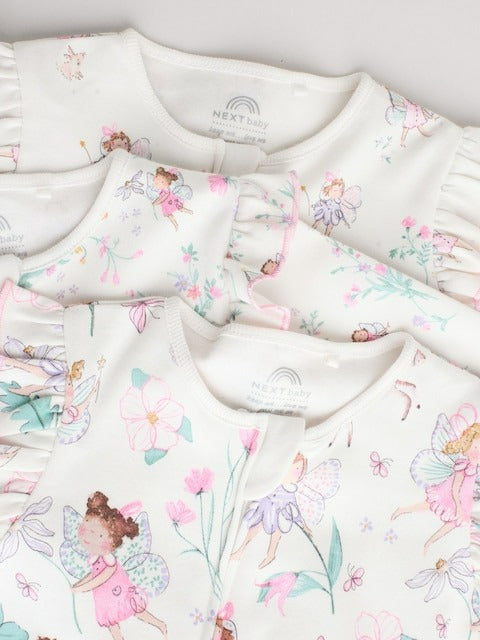 Next UK Ecru Fairy Two Way Zip Baby Sleepsuits – 3 Pack 🧚♀️🌸⭐