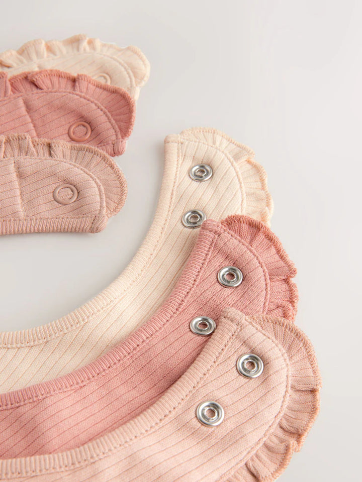 These soft, absorbent bibs come in gentle shades of pink — perfect for your little sweetheart 👶🌸