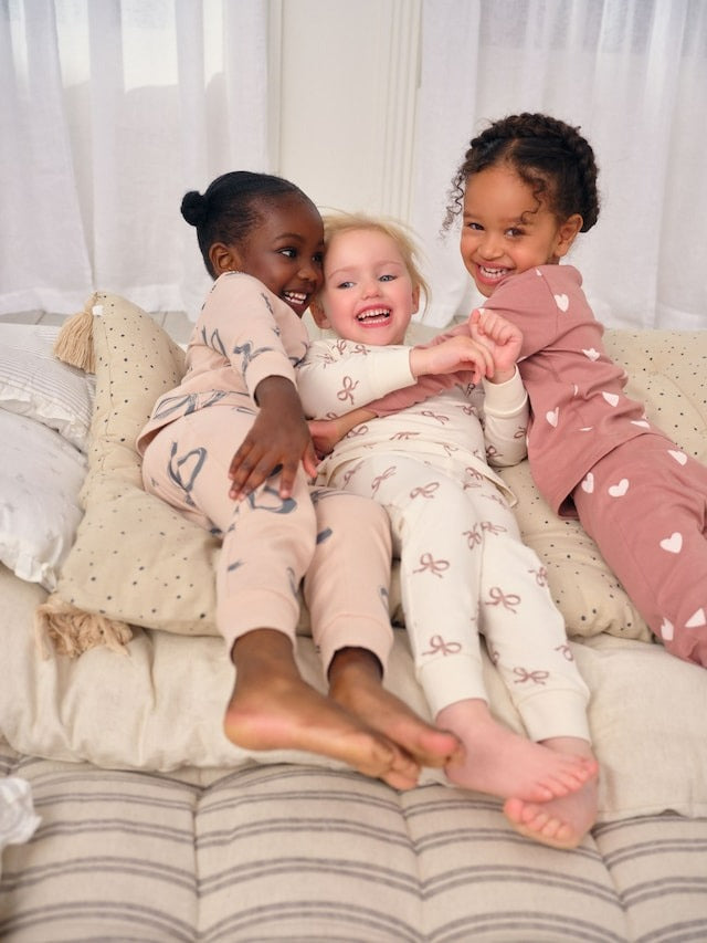 Pre Order Next UK Ecru/Brown Bow Print Snuggle Pyjamas 3 Pack (9mths-12yrs) AN7-366