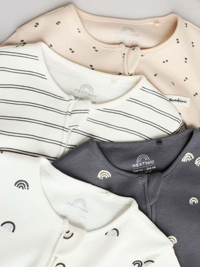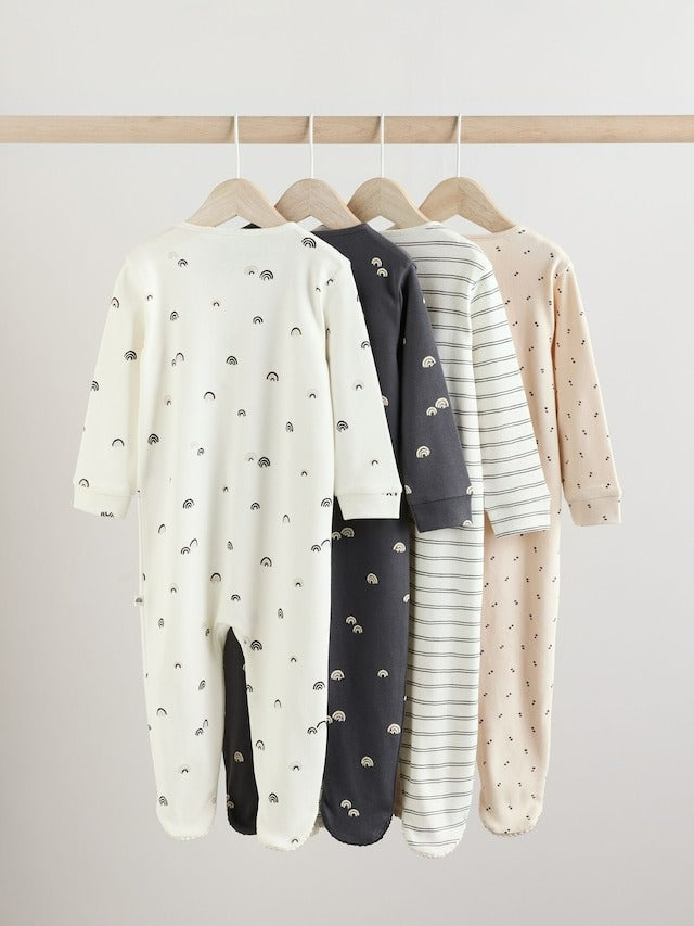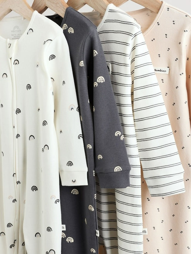 Next Uk White/Black Two Way Zip Baby Sleepsuits 4 Pack E19-698
