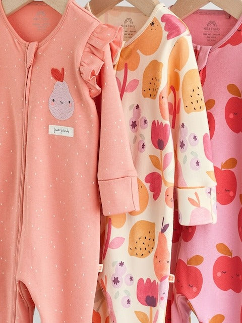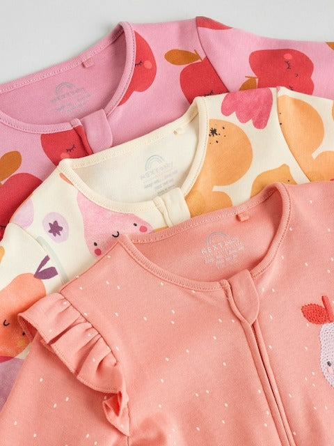 Preorder Next Autumn Fruit Two Way Zip Baby Sleepsuits 3 Pack (0-2yrs) F35-967