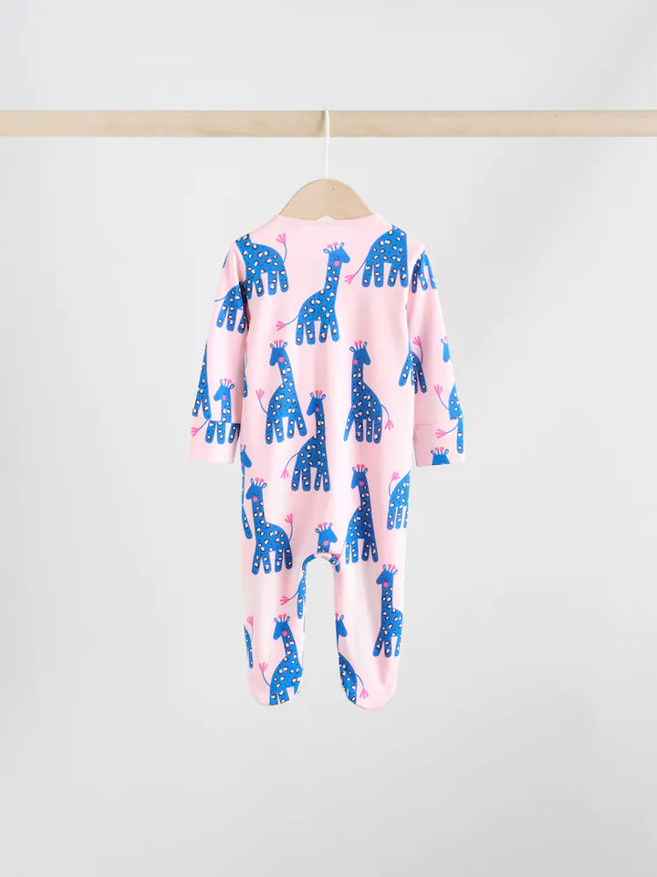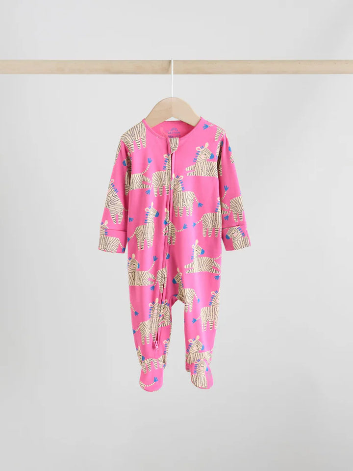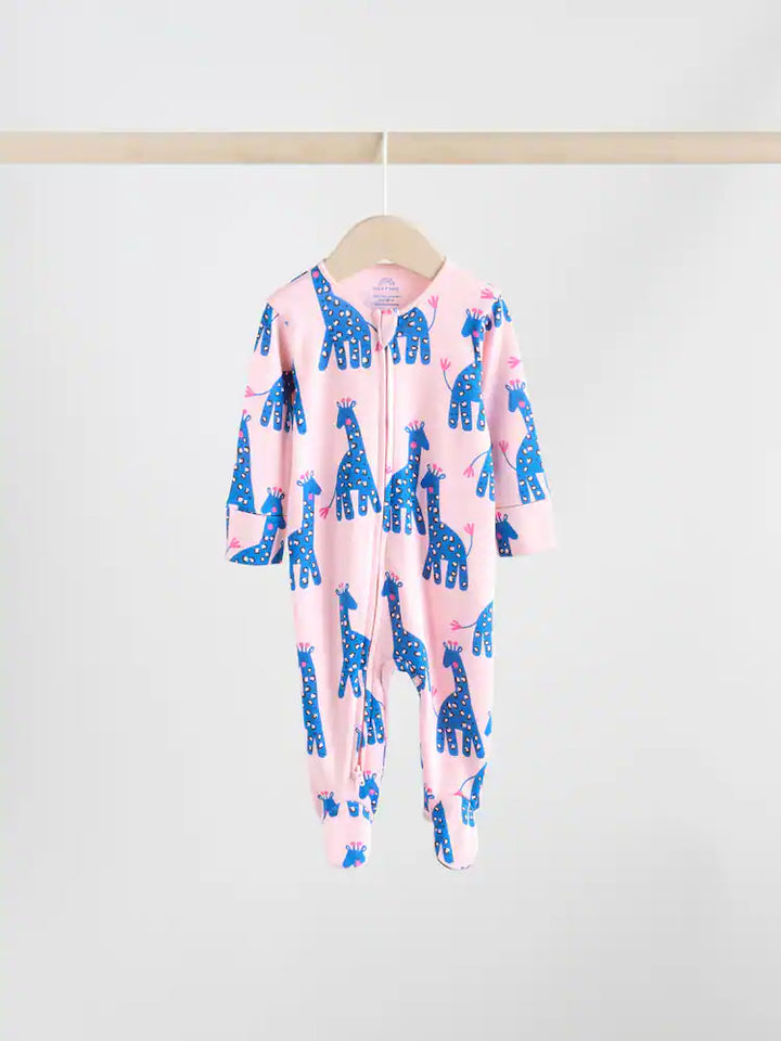 🐘🦒 Preorder Now! Next Blue/Pink Animal Character Two-Way Zip Sleepsuits – 3 Pack (0mths–2yrs) 🩵🩷