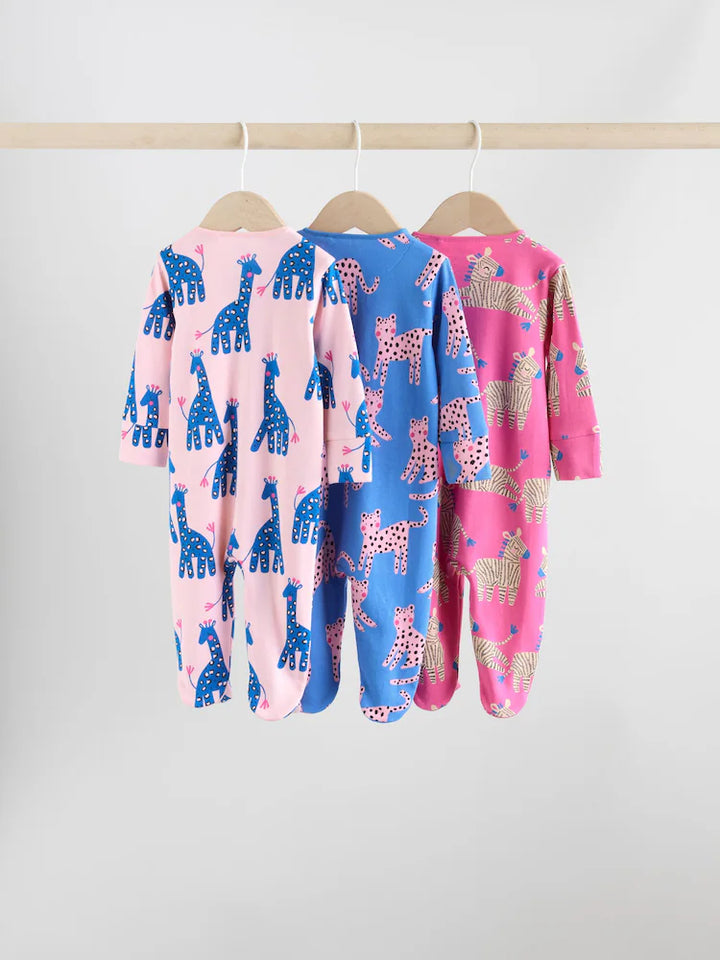 Preorder Next Blue/Pink Animal Character 3 Pack Two Way Zip Baby Sleepsuits (0mths-2yrs)