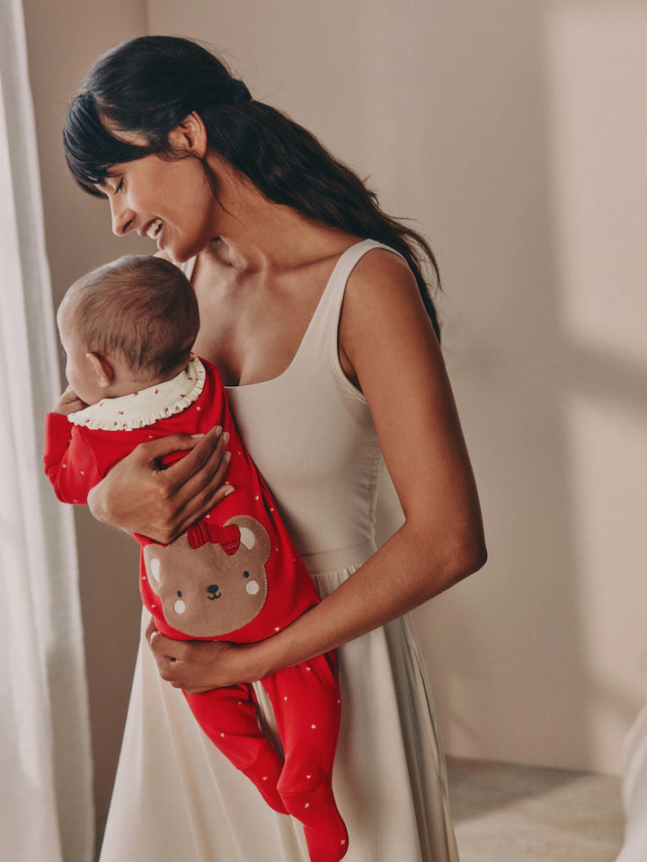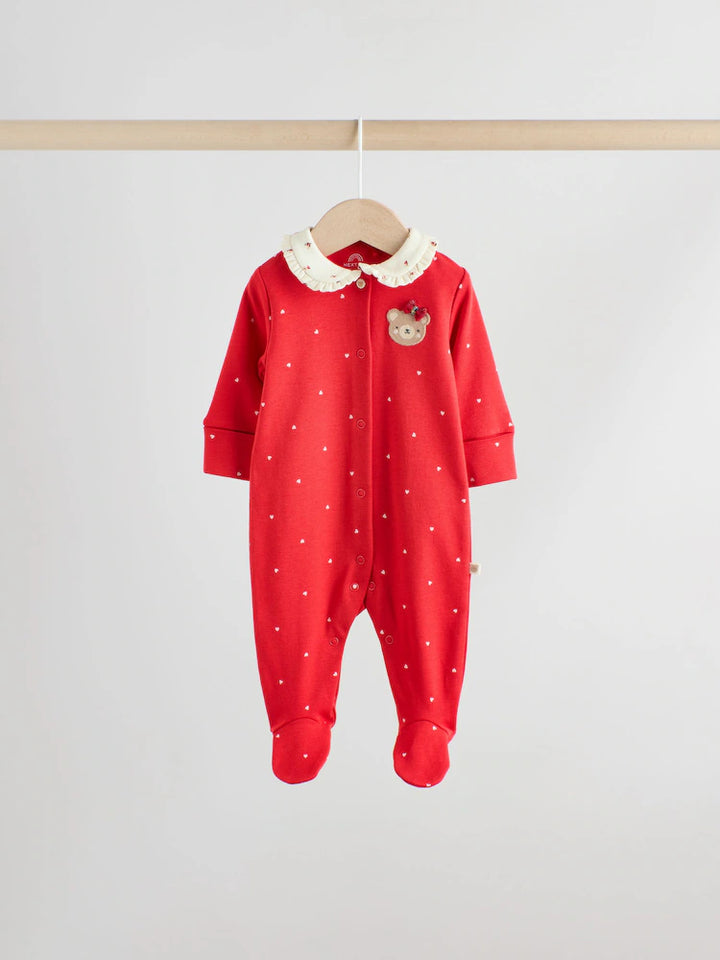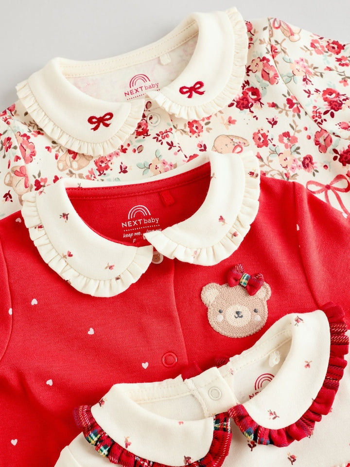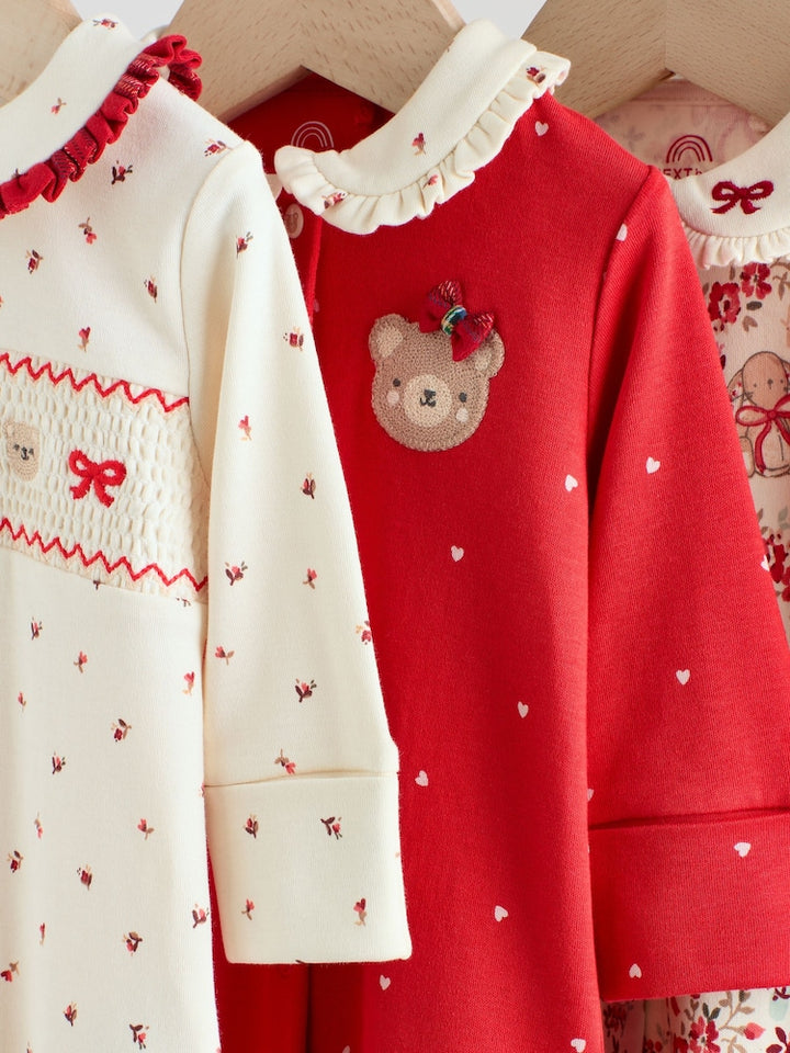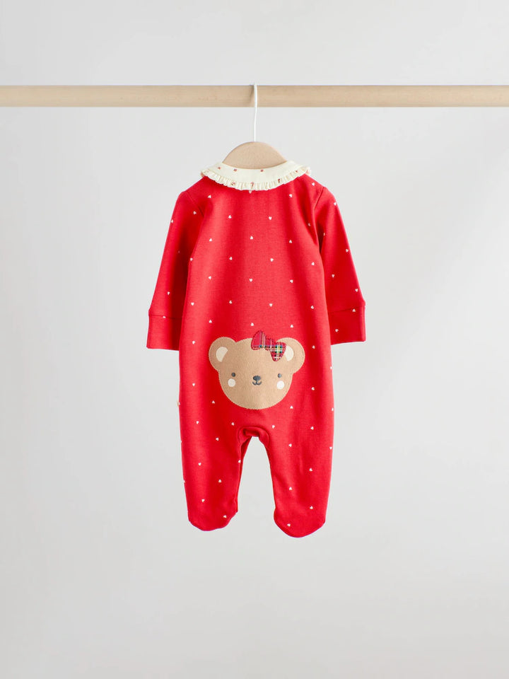 🐻 Preorder Now! Next Red Bow Bear Baby Sleepsuits – 3 Pack (0mths–2yrs) 🎀
