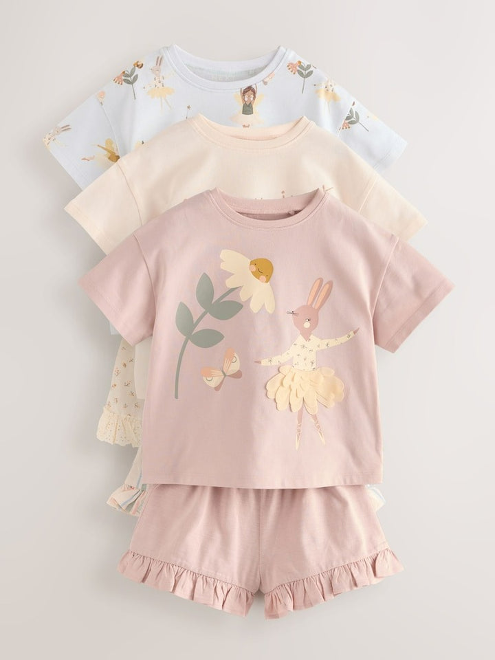 Preorder Next Uk Pink Bunny Top and Shorts Set 3 Pack (3mths-7yrs) AG8-684