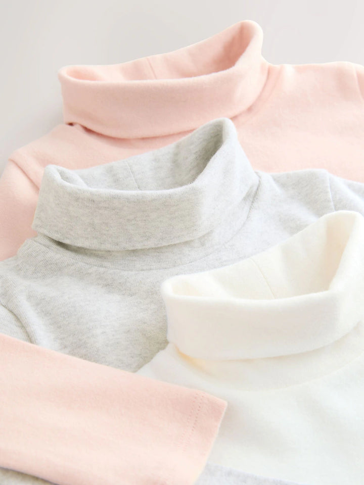 Preorder Pink/Cream Roll Neck Tops 3 Pack (3mths-7yrs)