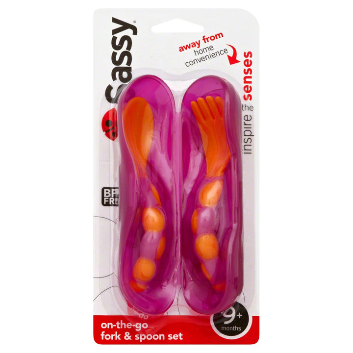 The Sassy On-the-Go Fork & Spoon Set is the perfect mealtime companion for little ones transitioning to independent eating. Whether at home, daycare, or on the go, this set helps make self-feeding fun, easy, and mess-free!